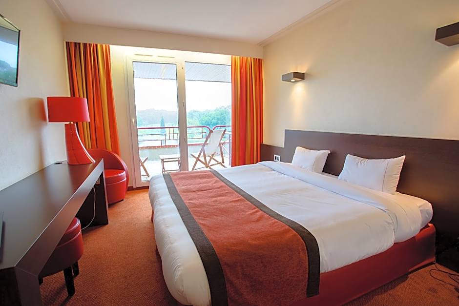 This room offers a balcony with a view of the lake. Dear customer, we inform you that our wellness area swimming pool, sauna, hammam and jacuzzi will be closed for annual maintenance on Wednesday June 7, 2023. The space will be accessible again from Thursday June 8, 2023. Thank you for your understanding .