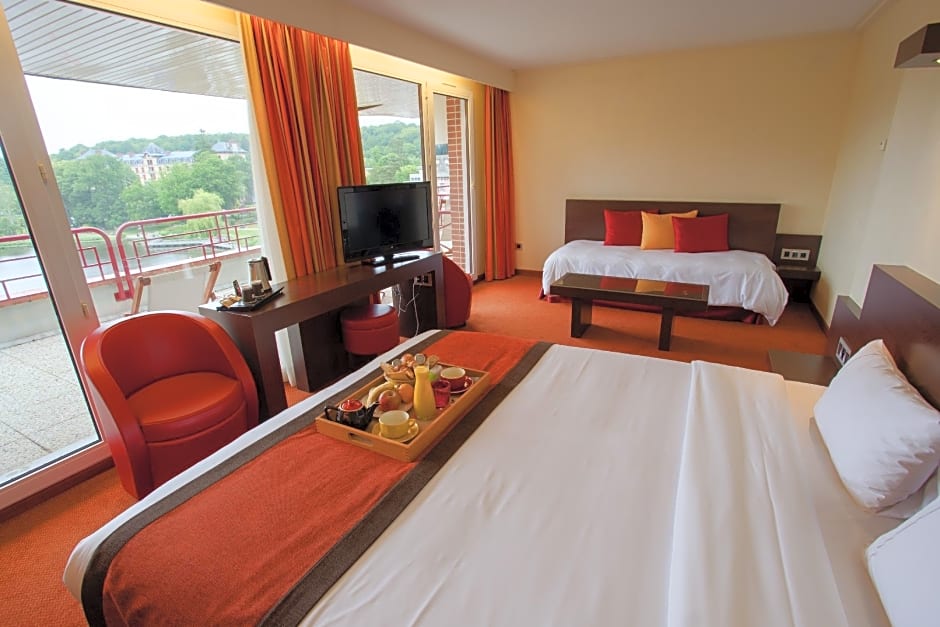 This room offers a view of the lake. Dear customer, we inform you that our wellness area swimming pool, sauna, hammam and jacuzzi will be closed for annual maintenance on Wednesday June 7, 2023. The space will be accessible again from Thursday June 8, 2023. Thank you for your understanding .